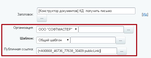 Публичная ссылка - ссылка на документ, которая будет вставлена в тело письма вместо параметра {publicLink}. В качестве значения данный параметр принимает значение публичной ссылки, которая была сформирована действием "
