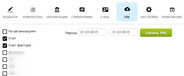 Вы можете выгрузить необходимые документы в формат XML. Формат файла не стандартизирован. Если есть какие-то особенные пожелания, пишите через встроенный модуль поддержки, постараемся реализовать.