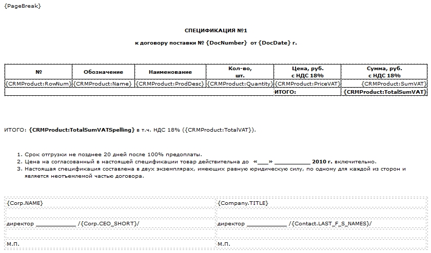 "Тело" шаблона представляет собой обычный html- документ, который может содержать текст, таблицы, элементы форматирования и переменные.