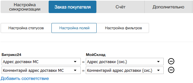 - добавлена возможность синхронизации комментария к адресу доставки МойСклад с пользовательским полем сделки типа "строка".