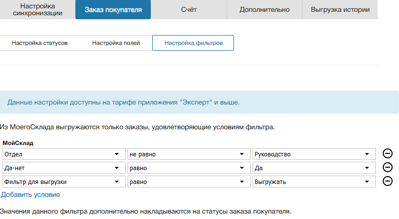 - добавили фильтрацию по каналам продаж и организациям для выгрузки из МойСклад;