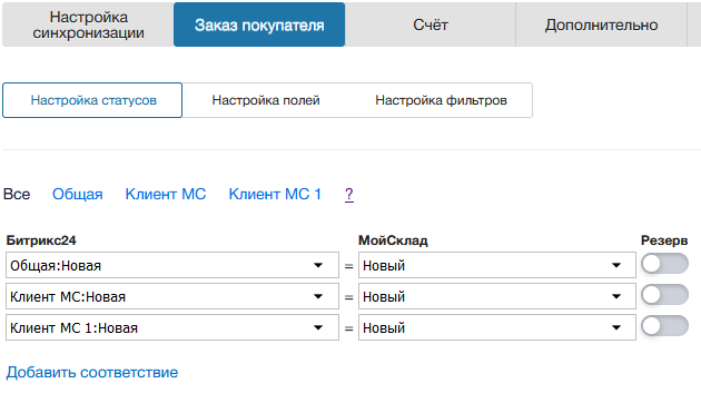 При использовании этой настройки Вы можете для соответствия статусов на стороне МойСклад использовать одинаковые значения.
