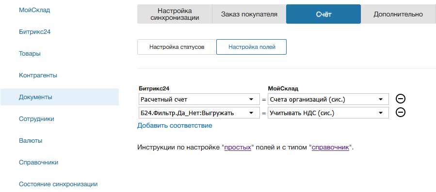 Если Ваш тариф Битрикс24 поддерживает настройку дополнительных полей, Вы можете настроить для них соответствие.