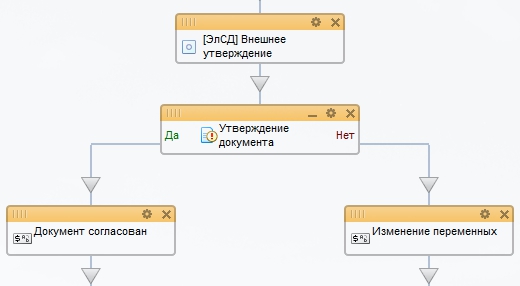 Действие "Внешнее согласование" располагается перед блоком "Утверждение документа".