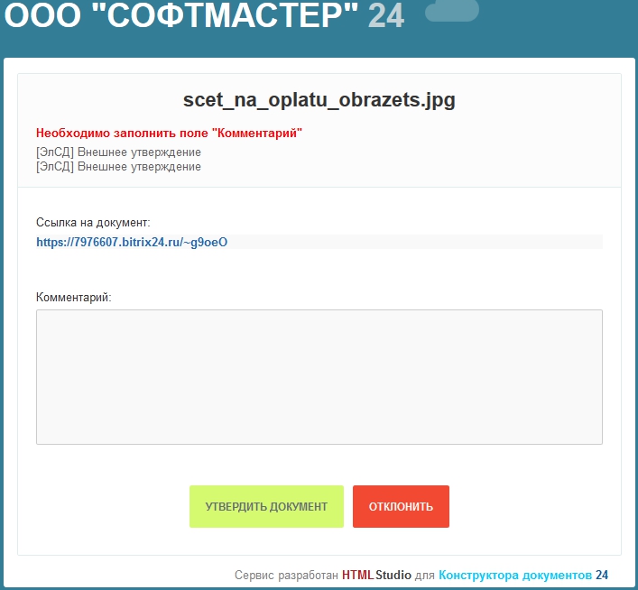 Название вашей компании - название компании, которое будет отображаться на форме согласования документа.