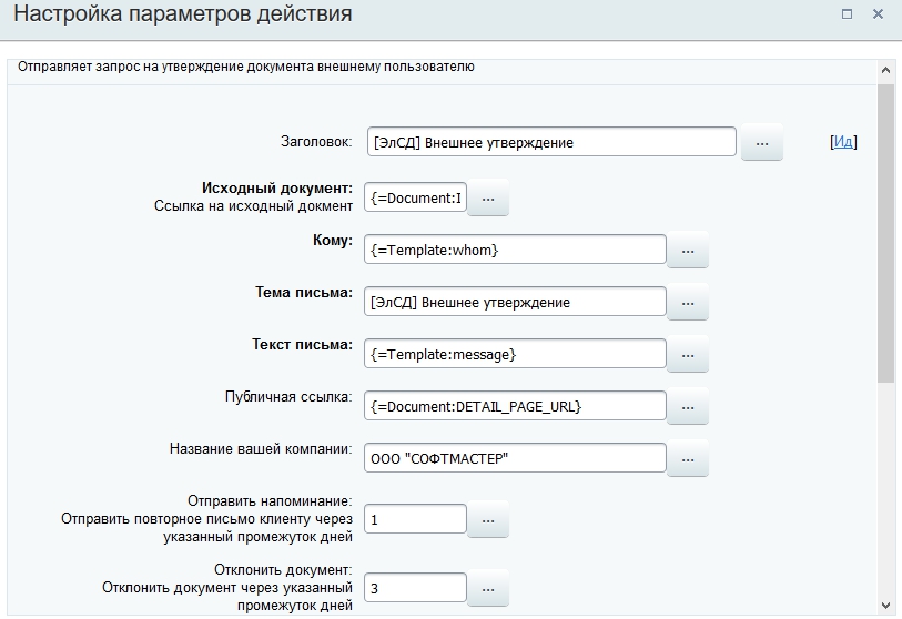 Отправить напоминание - если задание по согласованию документа не будет выполнено через указанный промежуток дней, клиенту в автоматическом режиме будет отправлено электронное письмо с напоминанием.