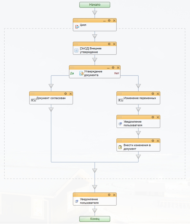 Администратор приложения может установить или удалить действия для бизнес-процессов, которые выполняют процедуру согласования документов.