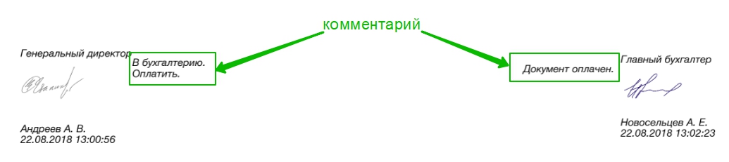 комментарий сотрудника, который он оставил в действии "Утверждение документа"