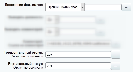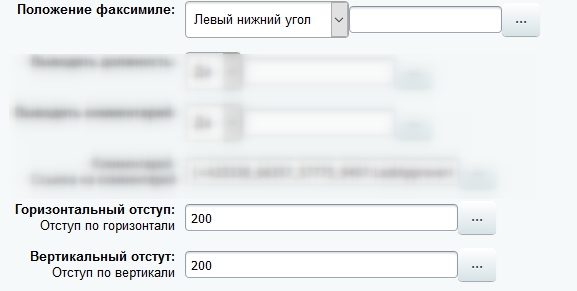Горизонтальный отступ - горизонтальный отступ, вычисляется относительно параметра "Положение факсимиле".