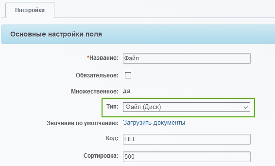 В этом случае Вам необходимо добавить поле с типом "Файл (диск)".