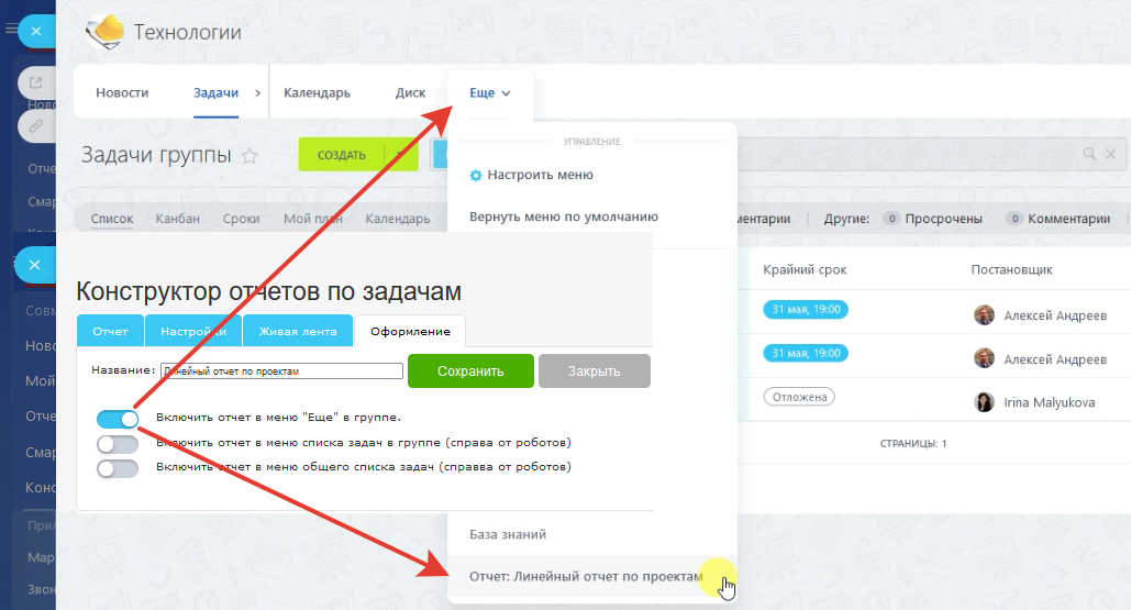 Меню "Еще" в группе.