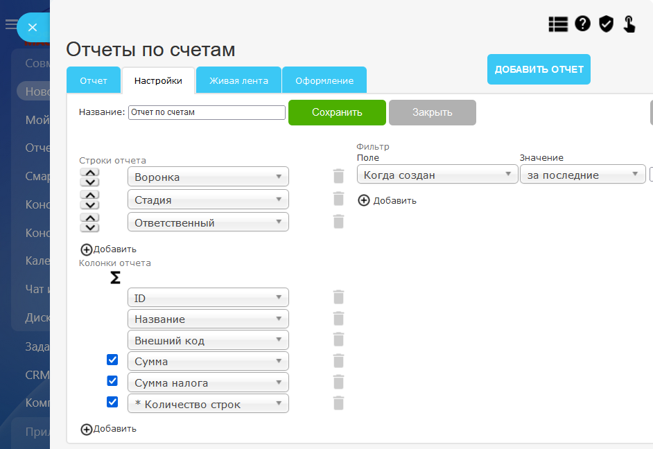 Важно: Для корректного формирования отчета рекомендуем все суммируемые поля располагать в конце отчета.