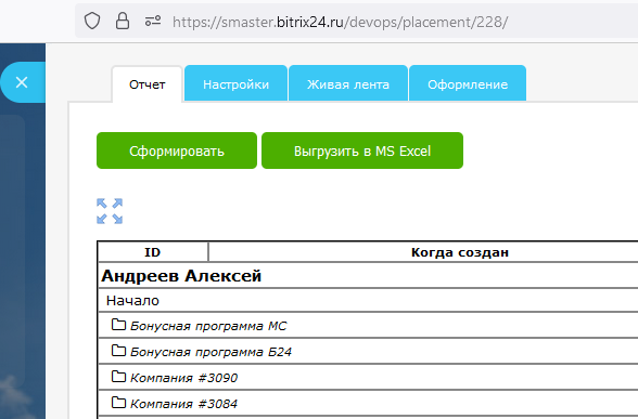 Вы можете опубликовать сформированный отчет в живой ленте Битрикс24.
