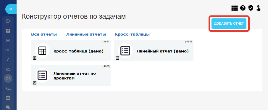 Для добавления нового отчета используете кнопку "Добавить отчет".