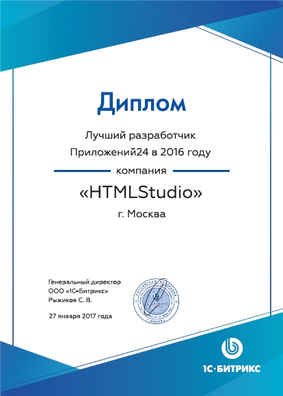 По итогам 2016 года наша компания признана лучшим разработчиком Приложений24!