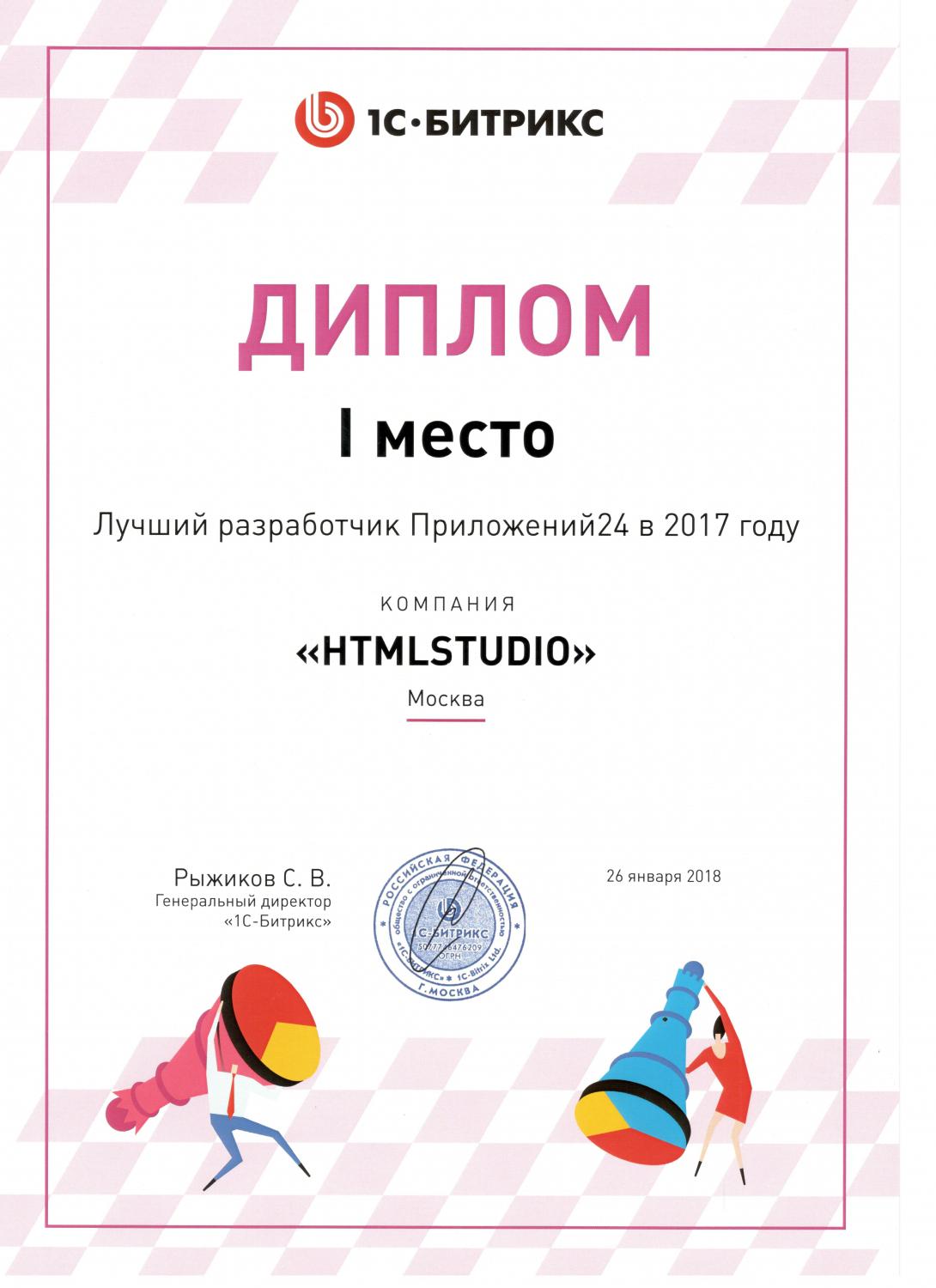 По результатам 2017 года наша компания признана лучшим разработчиком приложений для Битрикс24.